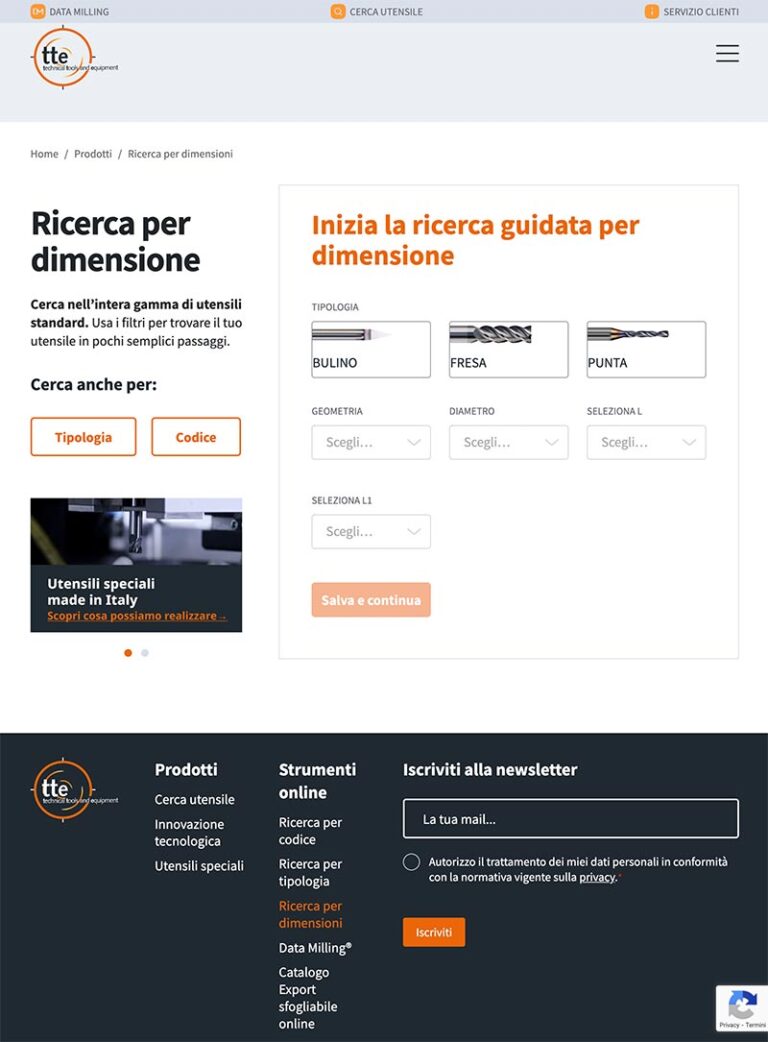 Uno degli elementi chiave del progetto è la sezione dedicata alla ricerca prodotti, sviluppata su misura per le esigenze di TTE: uno strumento avanzato, integrato con software gestionali realizzati ad hoc, che permette di filtrare e individuare facilmente articoli specifici all’interno di un catalogo ampio e articolato, offrendo dati sempre aggiornati e precisi.